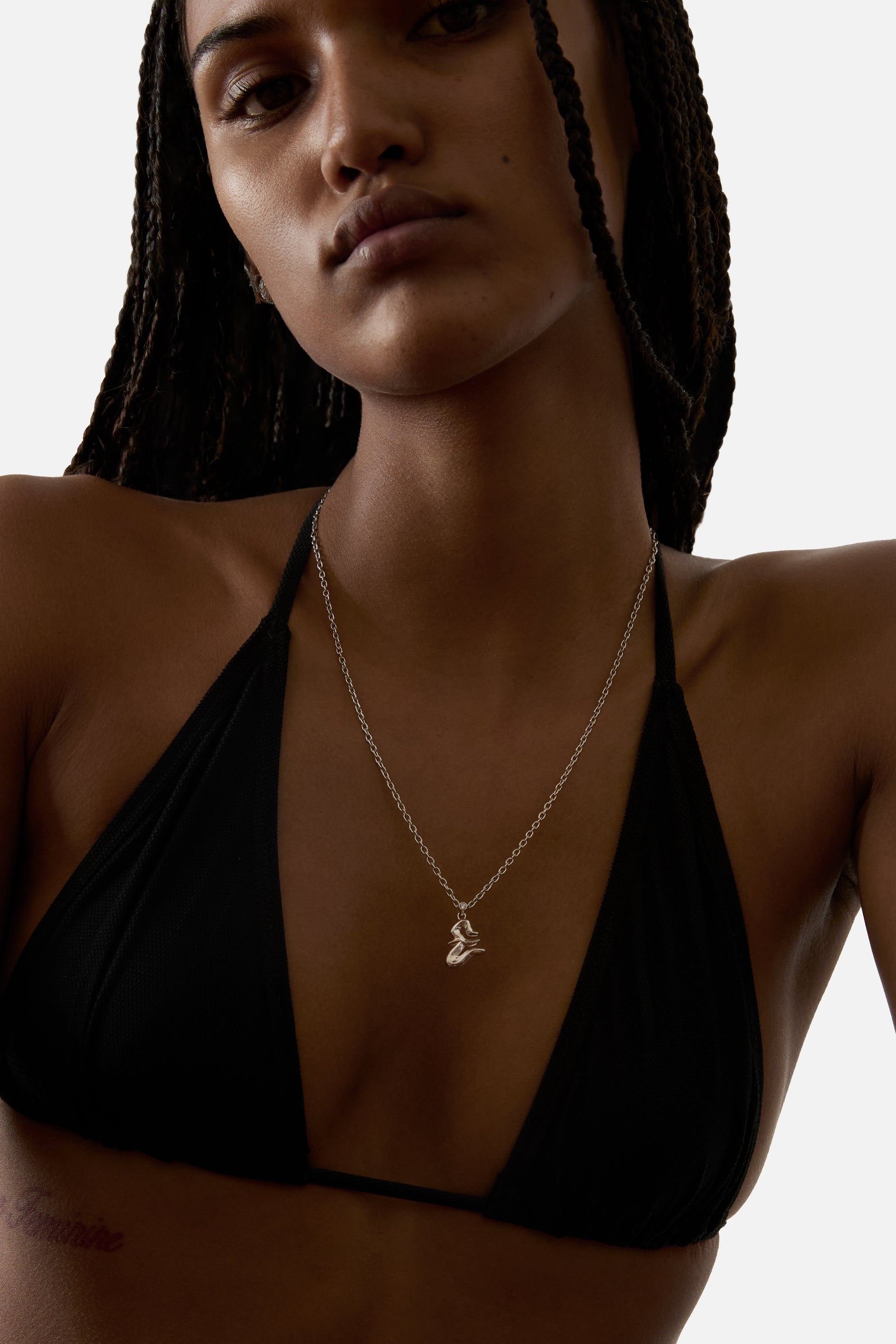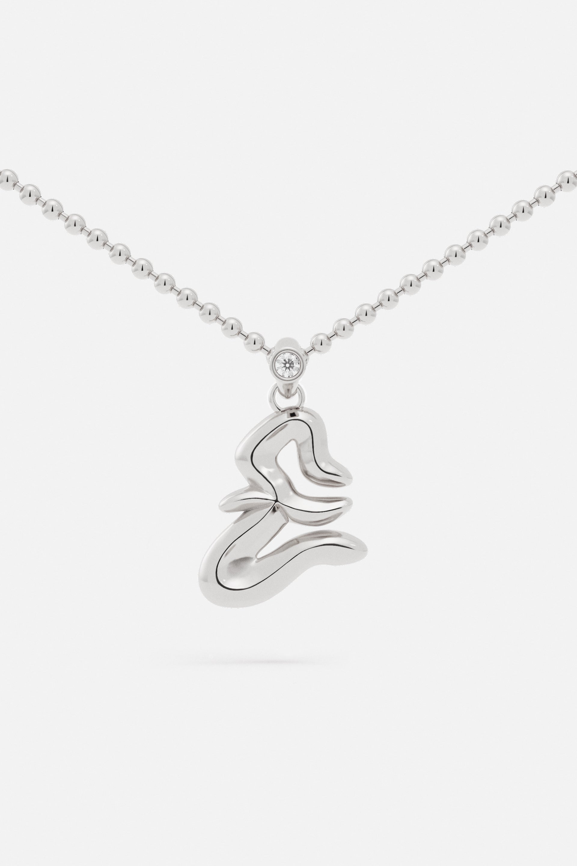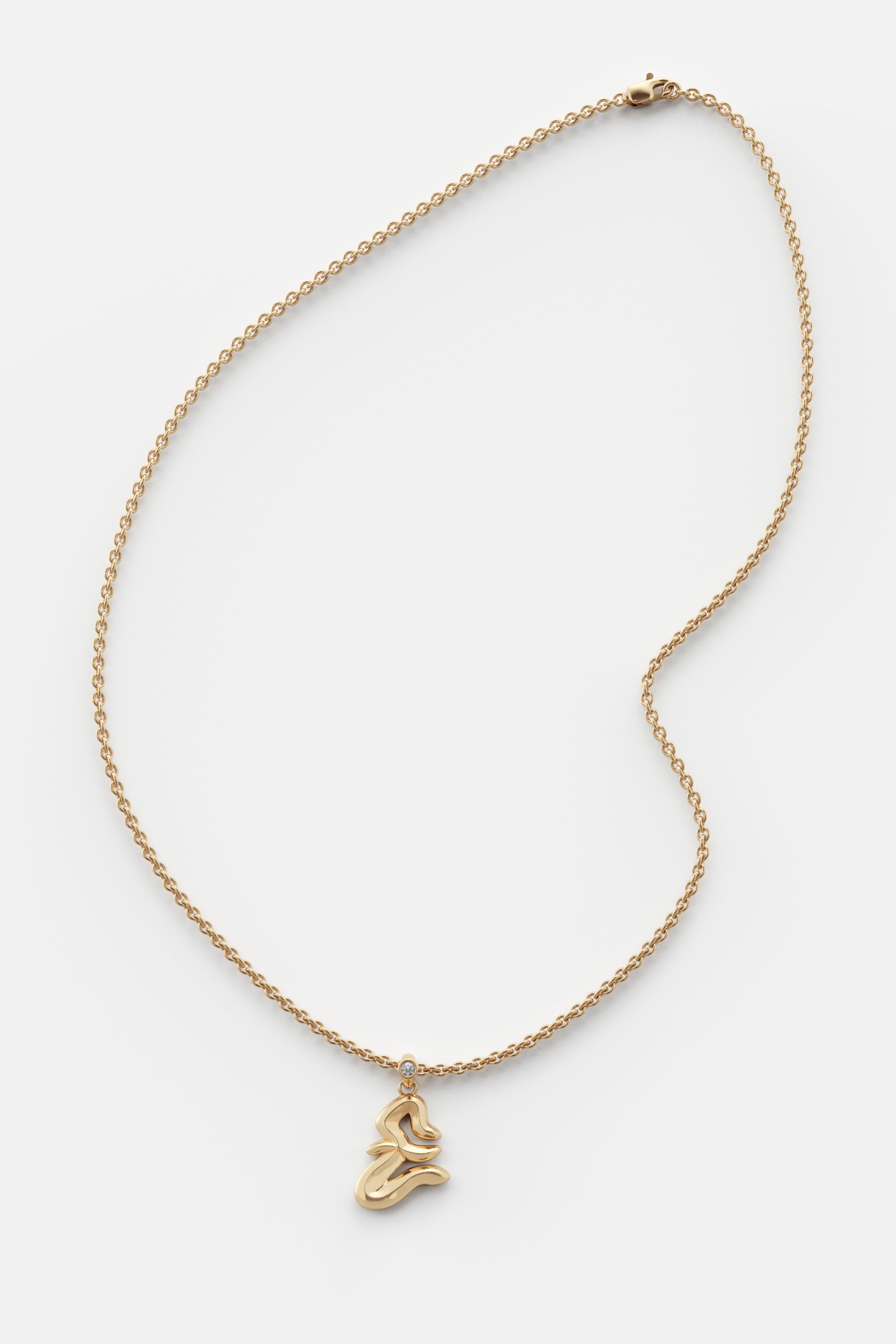 A jewelry essential, the letter pendant is reimagined through the vision of Lloyd Steven. Each letter is shaped with distinct curves and defined by a subtle ridge, creating detail and dimension.