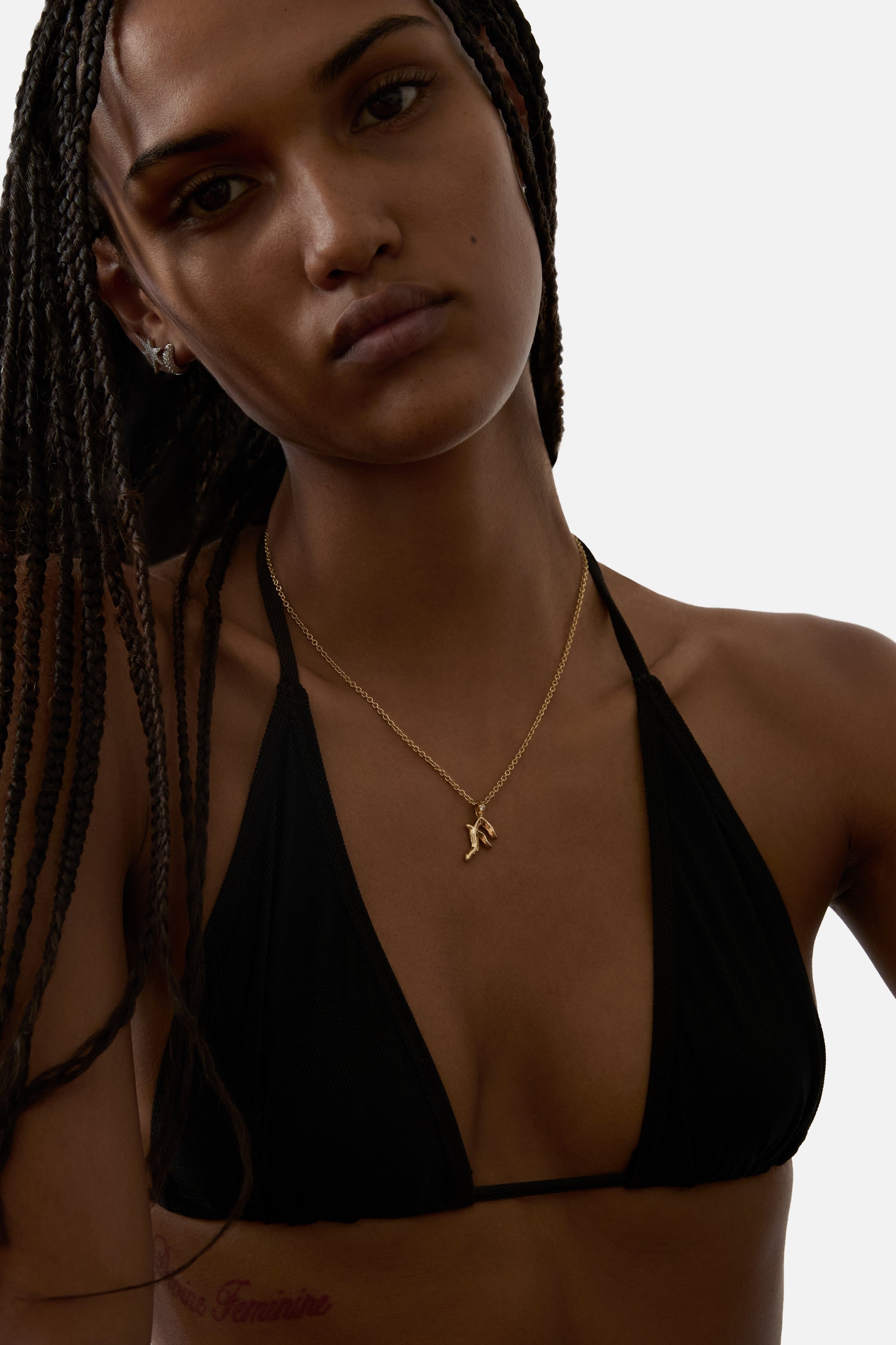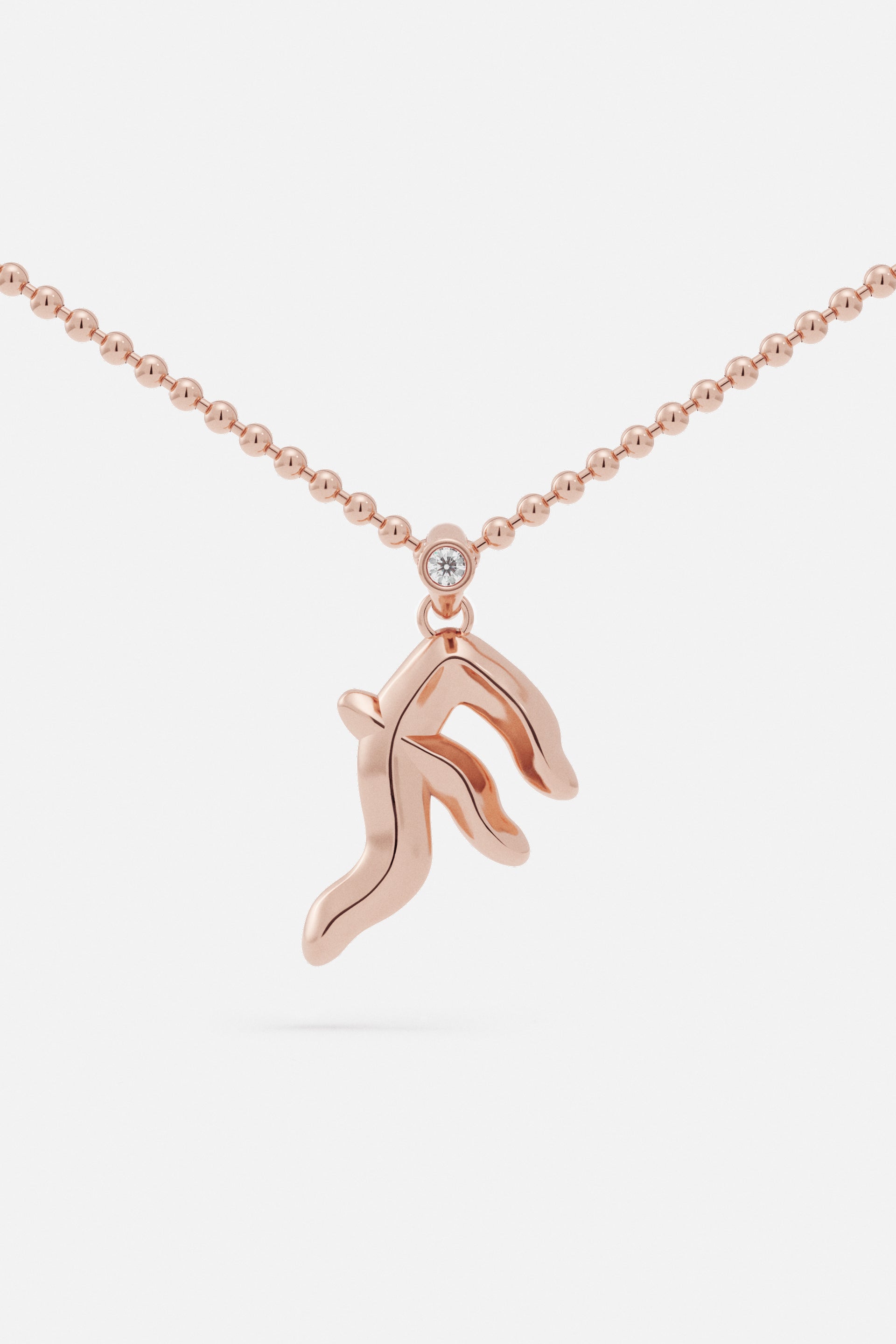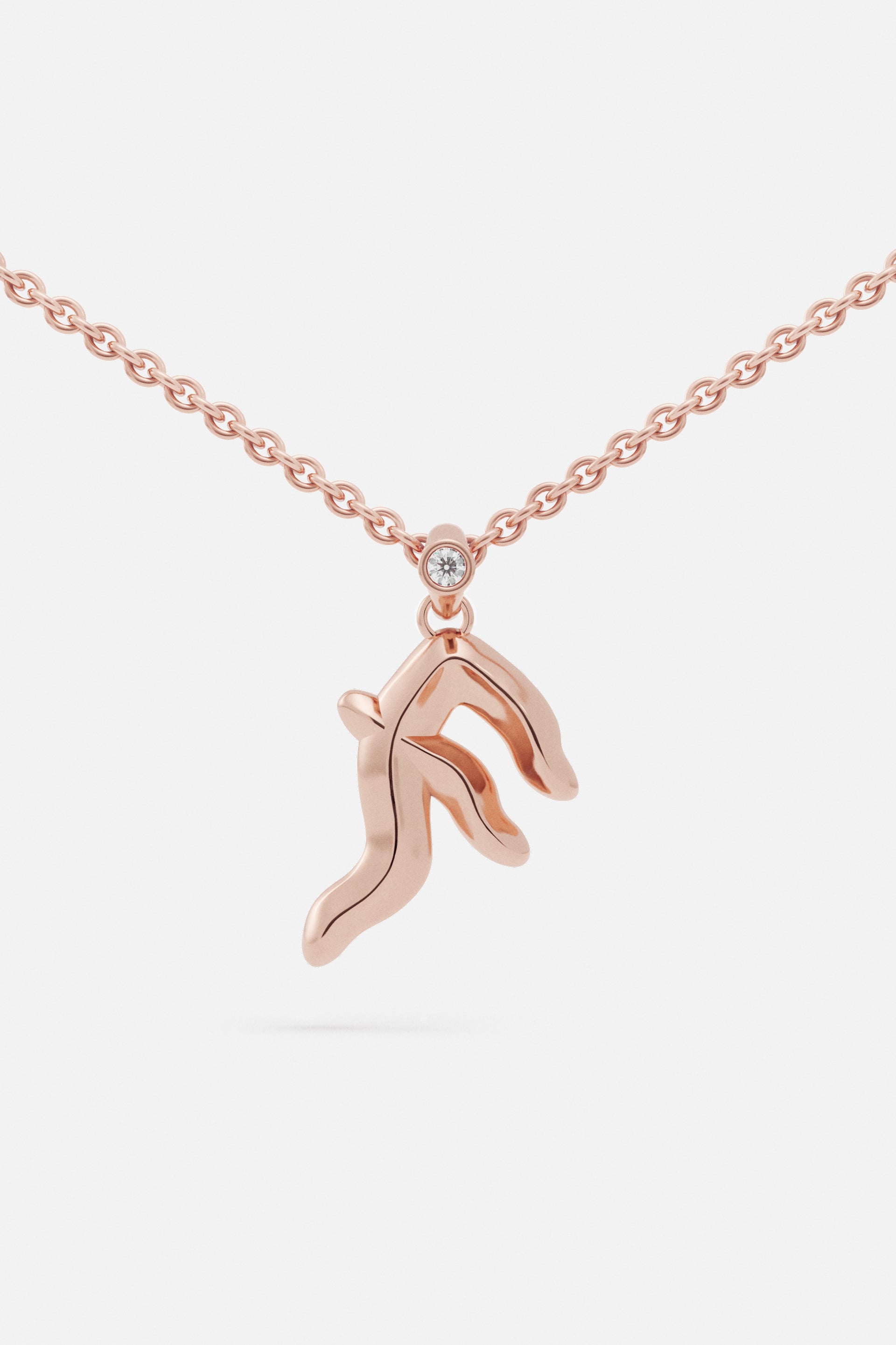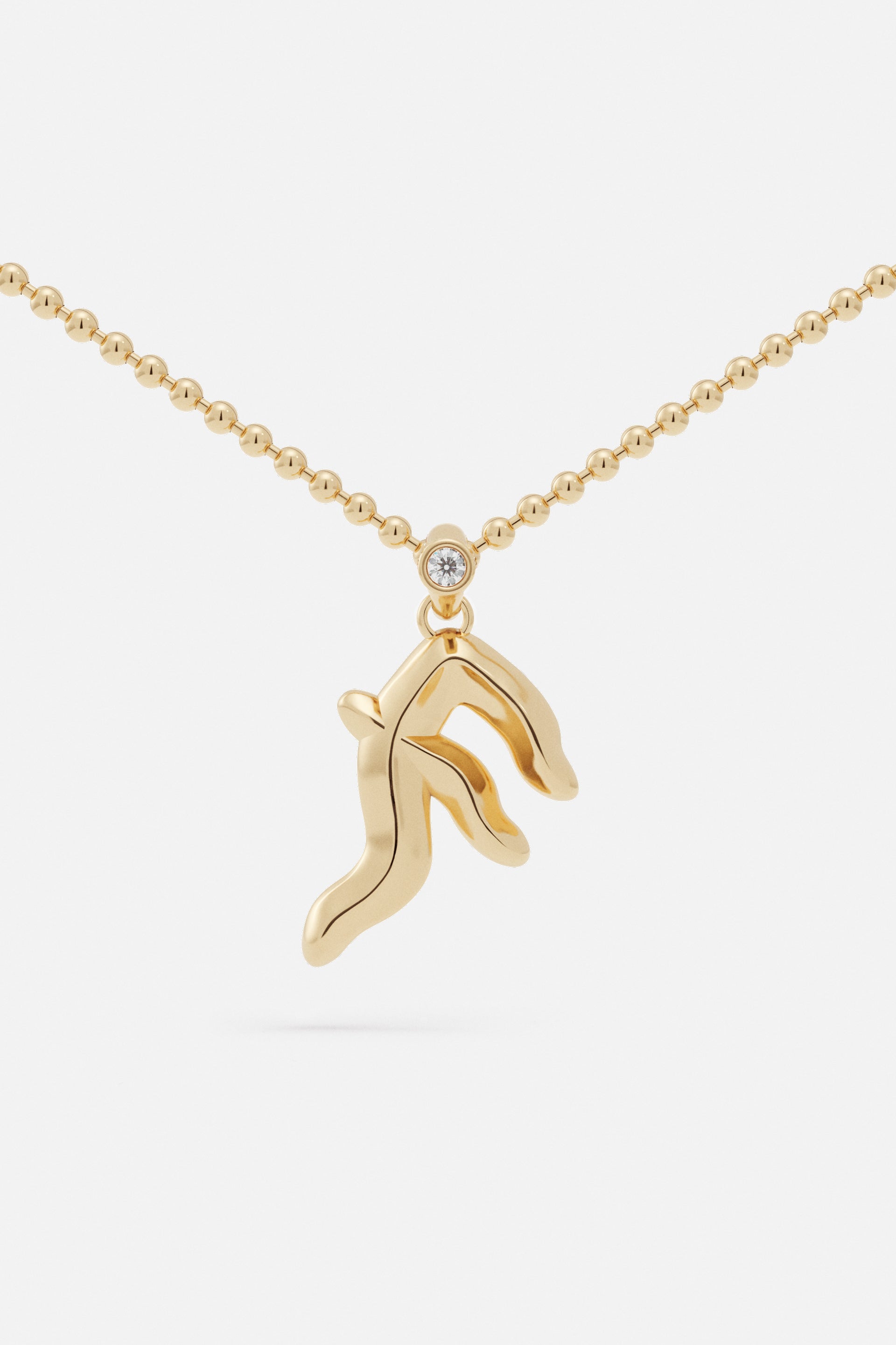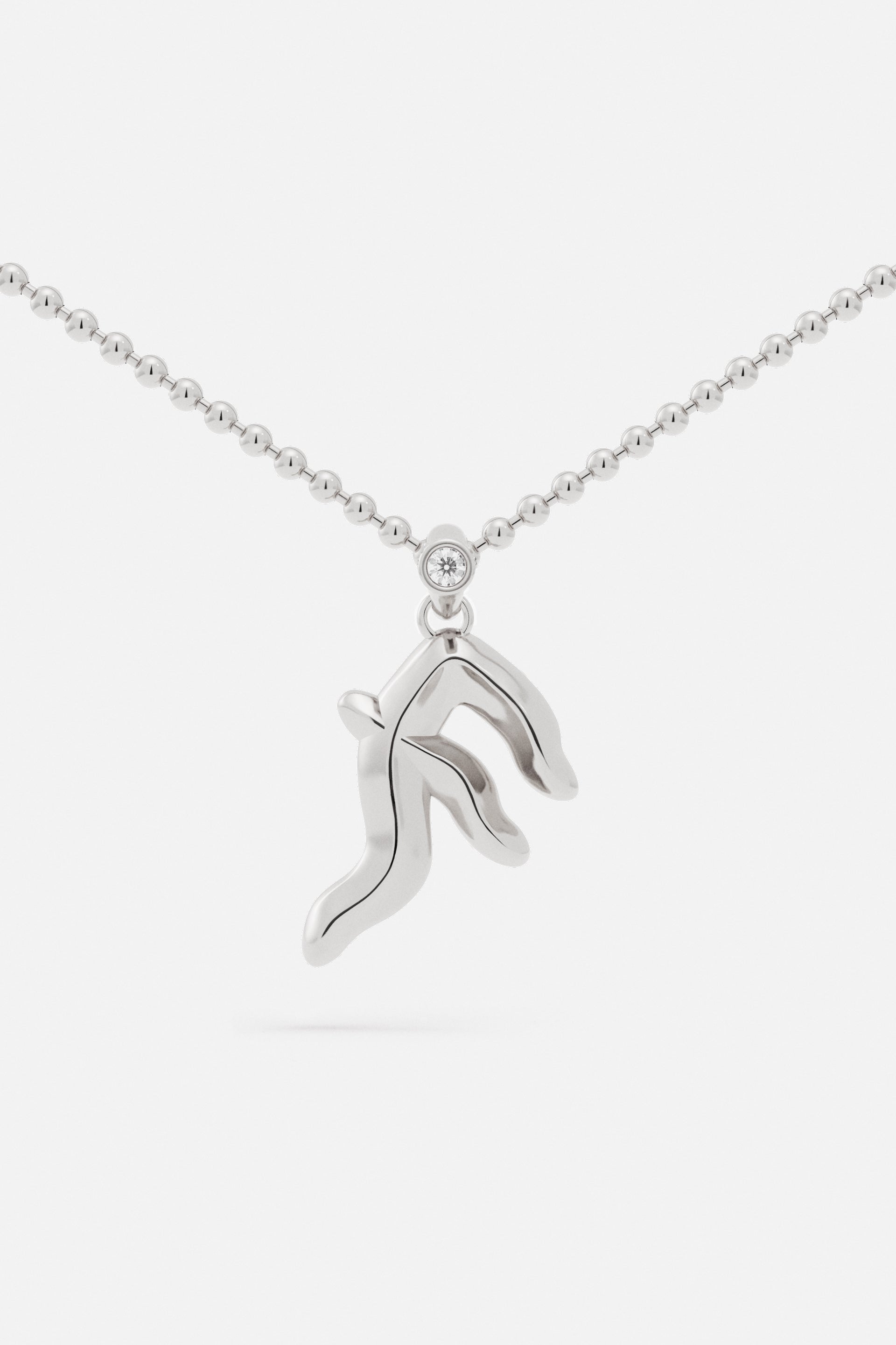 A jewelry essential, the letter pendant is reimagined through the vision of Lloyd Steven. Each letter is shaped with distinct curves and defined by a subtle ridge, creating detail and dimension.