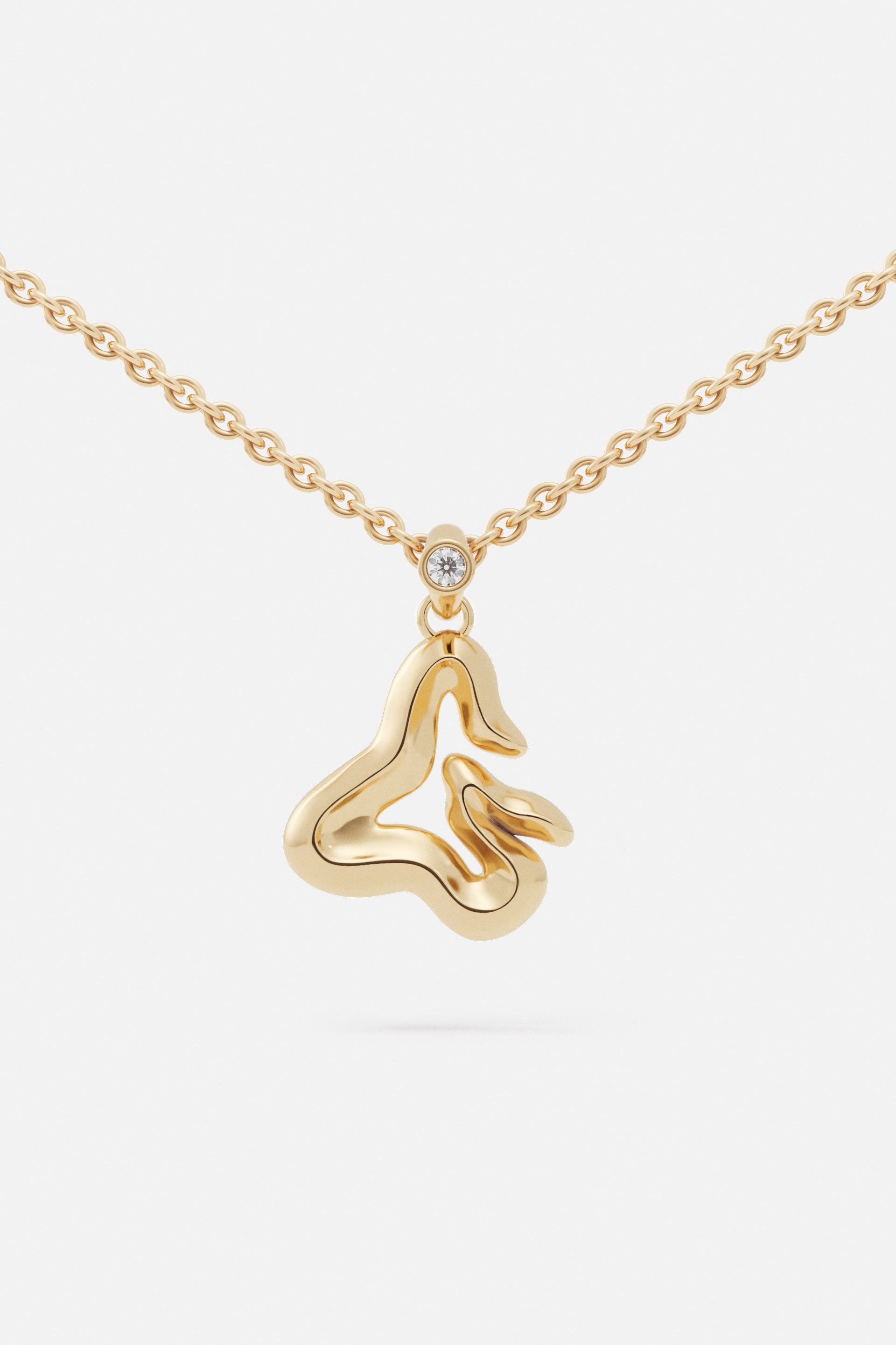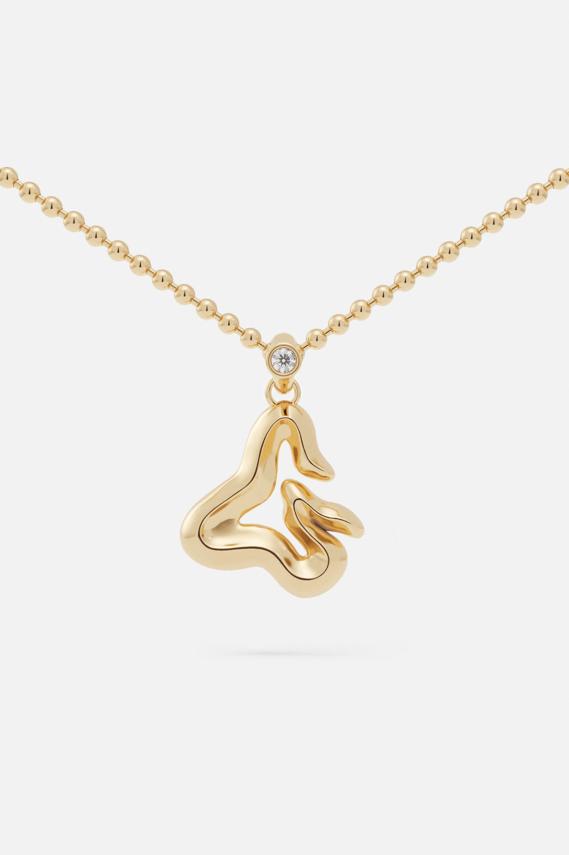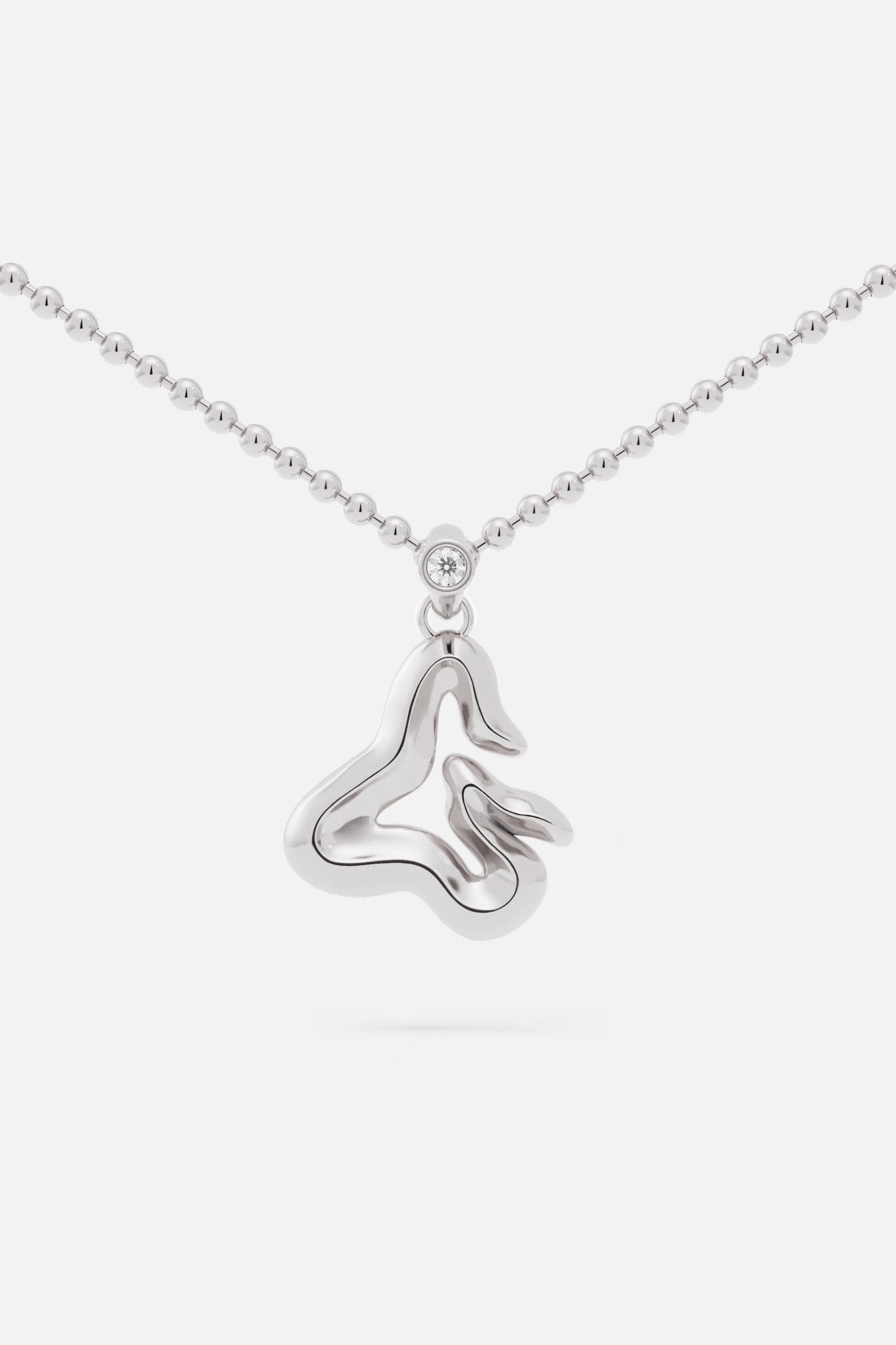 A jewelry essential, the letter pendant is reimagined through the vision of Lloyd Steven. Each letter is shaped with distinct curves and defined by a subtle ridge, creating detail and dimension.