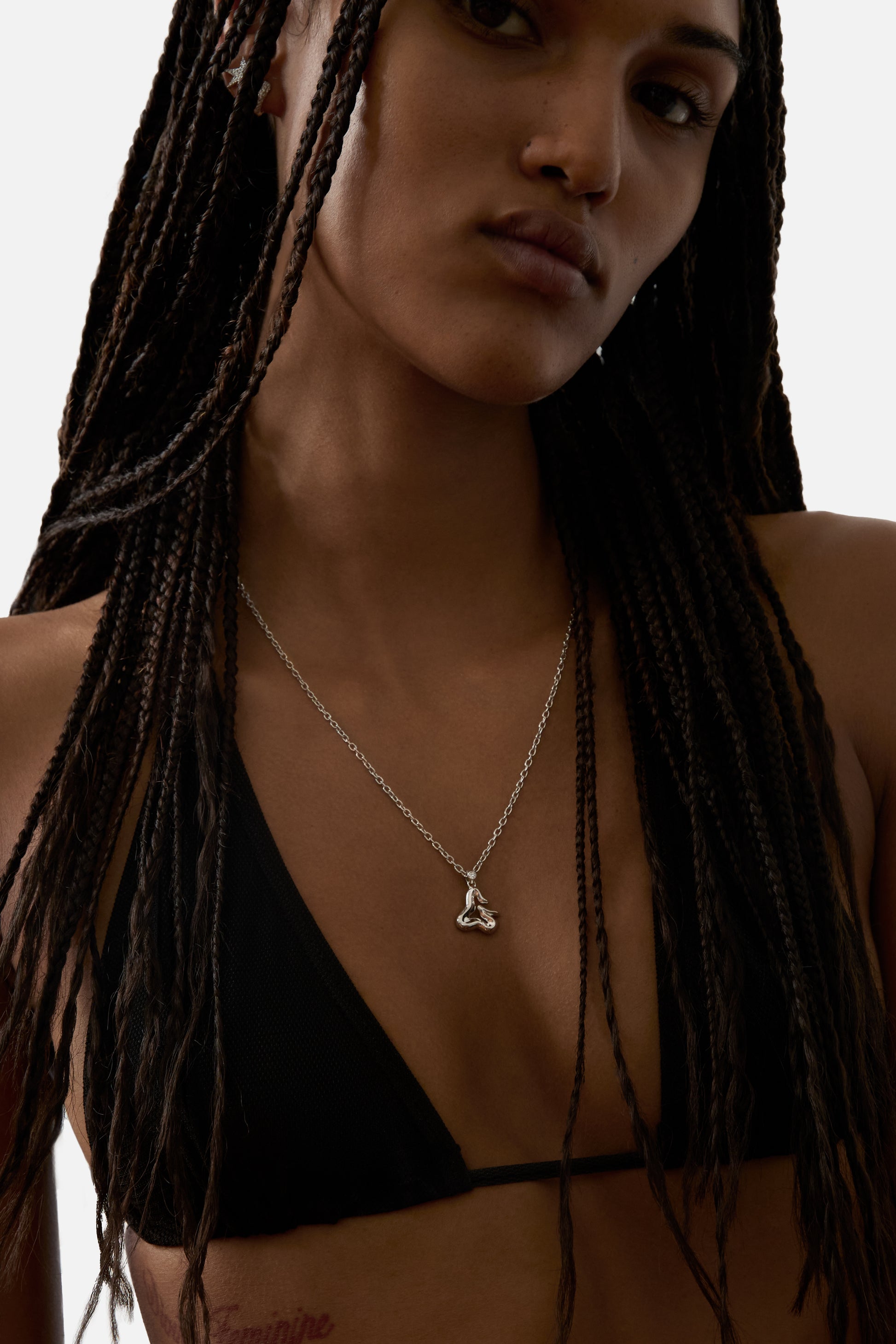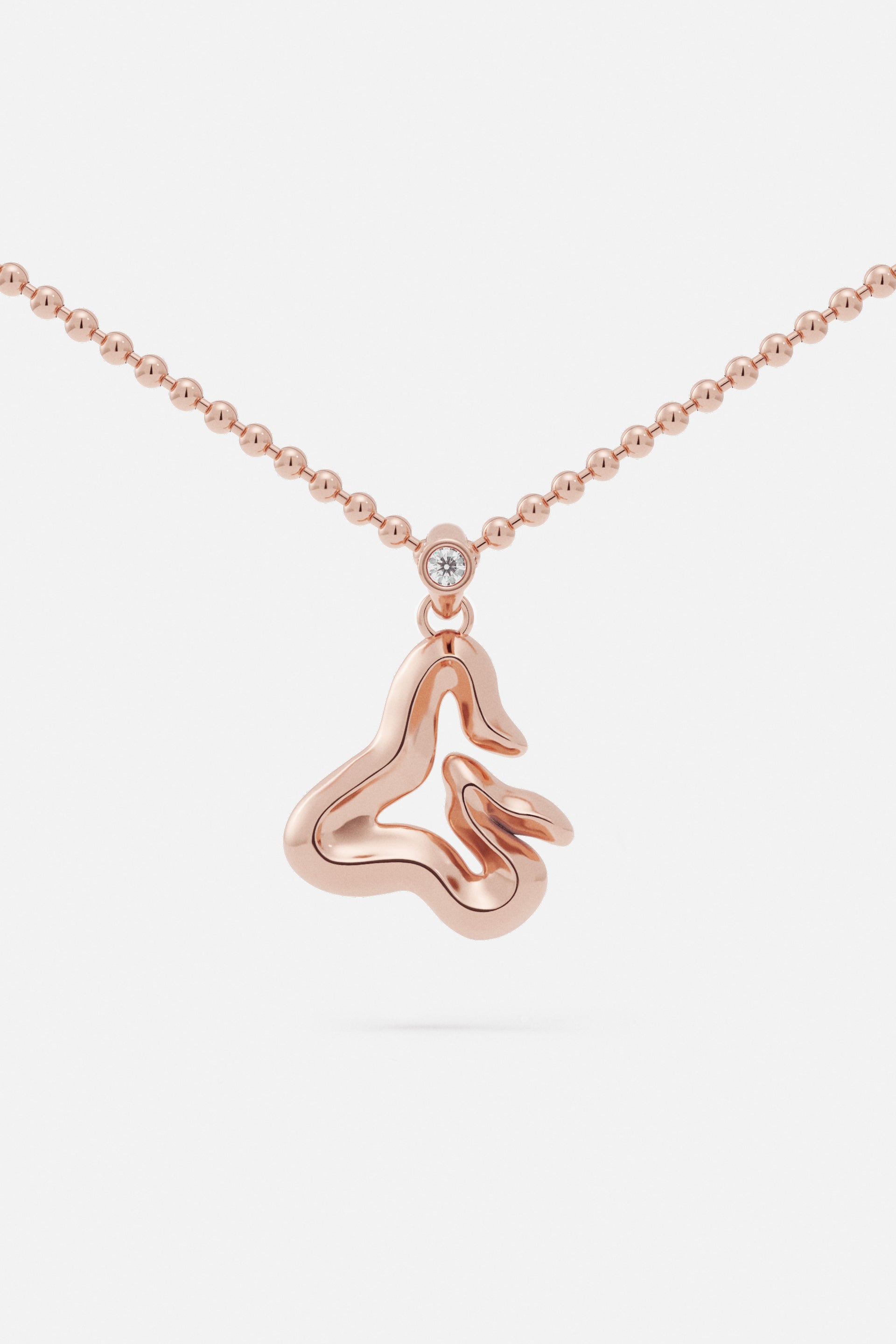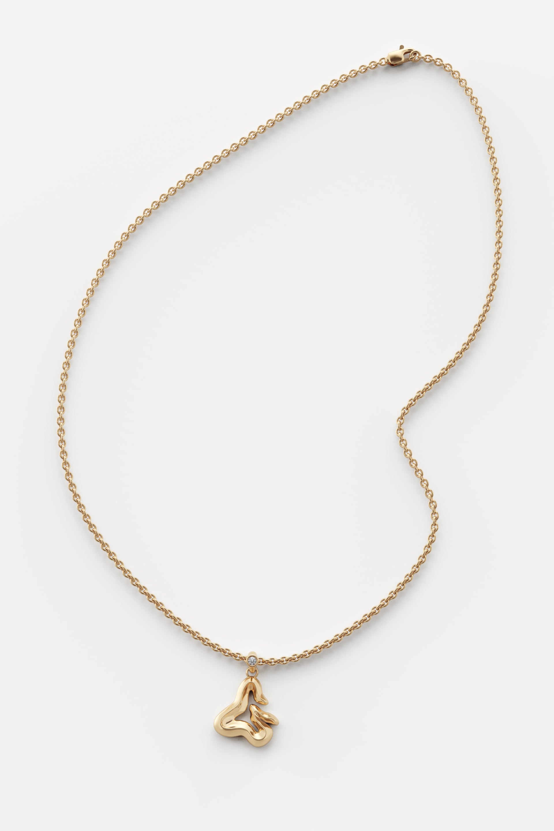 A jewelry essential, the letter pendant is reimagined through the vision of Lloyd Steven. Each letter is shaped with distinct curves and defined by a subtle ridge, creating detail and dimension.