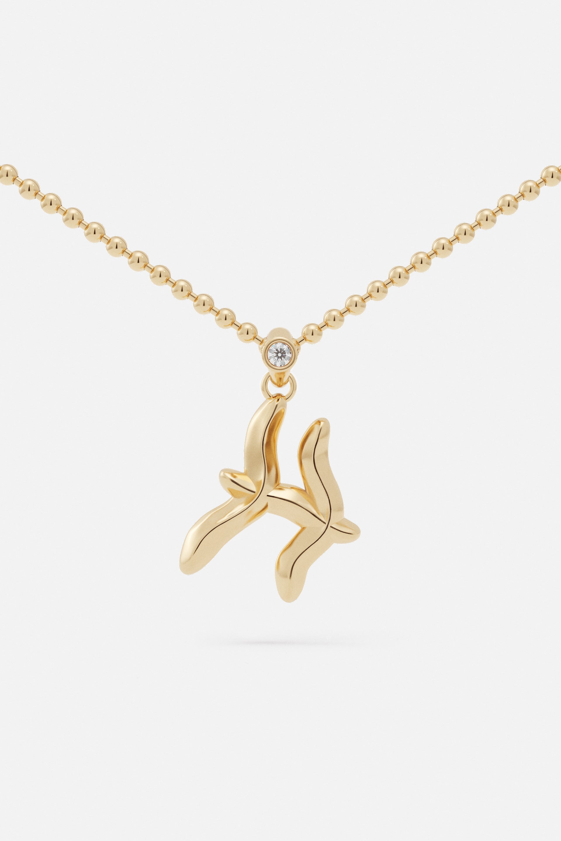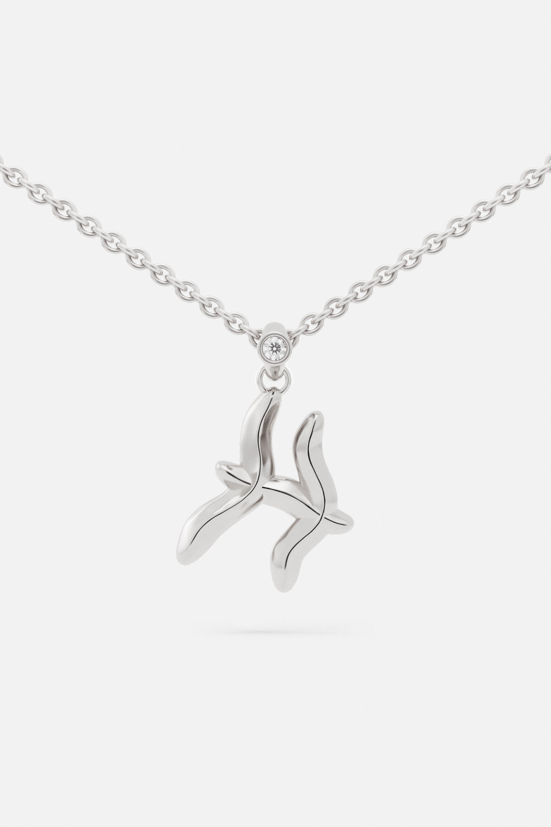 A jewelry essential, the letter pendant is reimagined through the vision of Lloyd Steven. Each letter is shaped with distinct curves and defined by a subtle ridge, creating detail and dimension.
