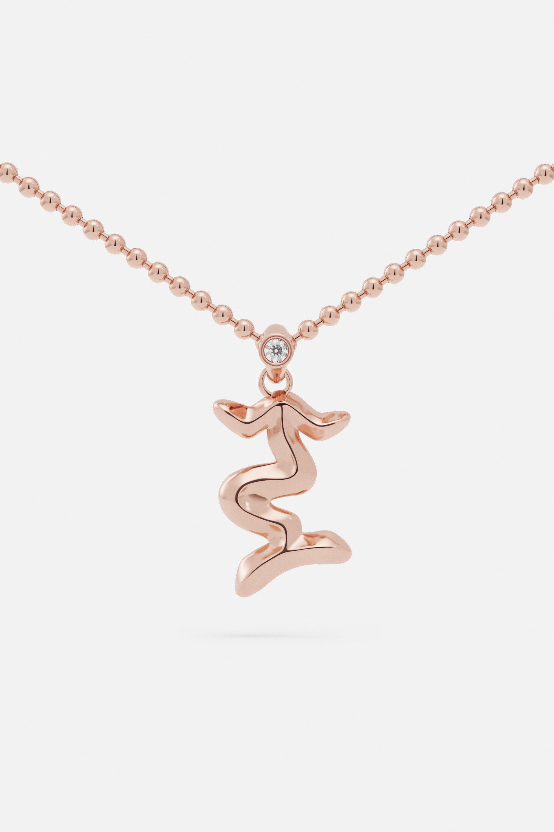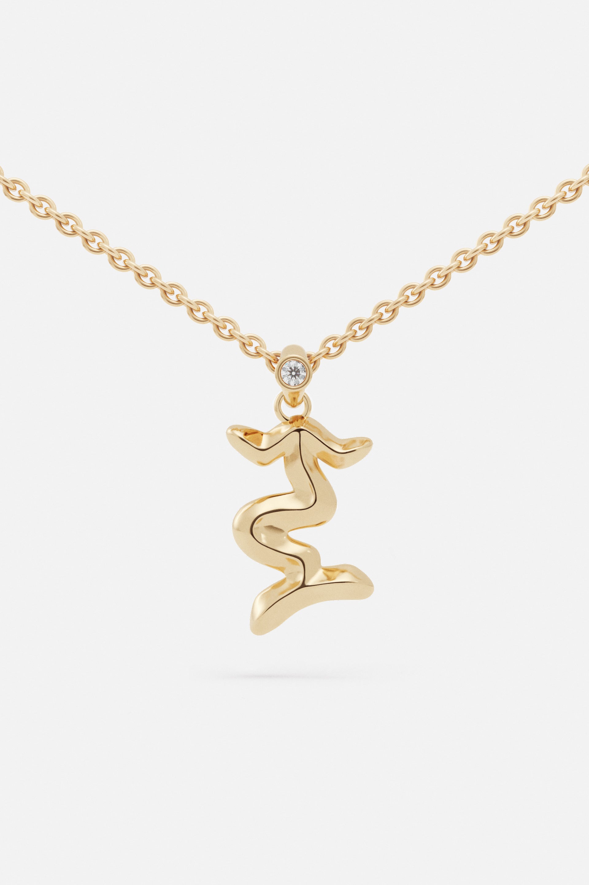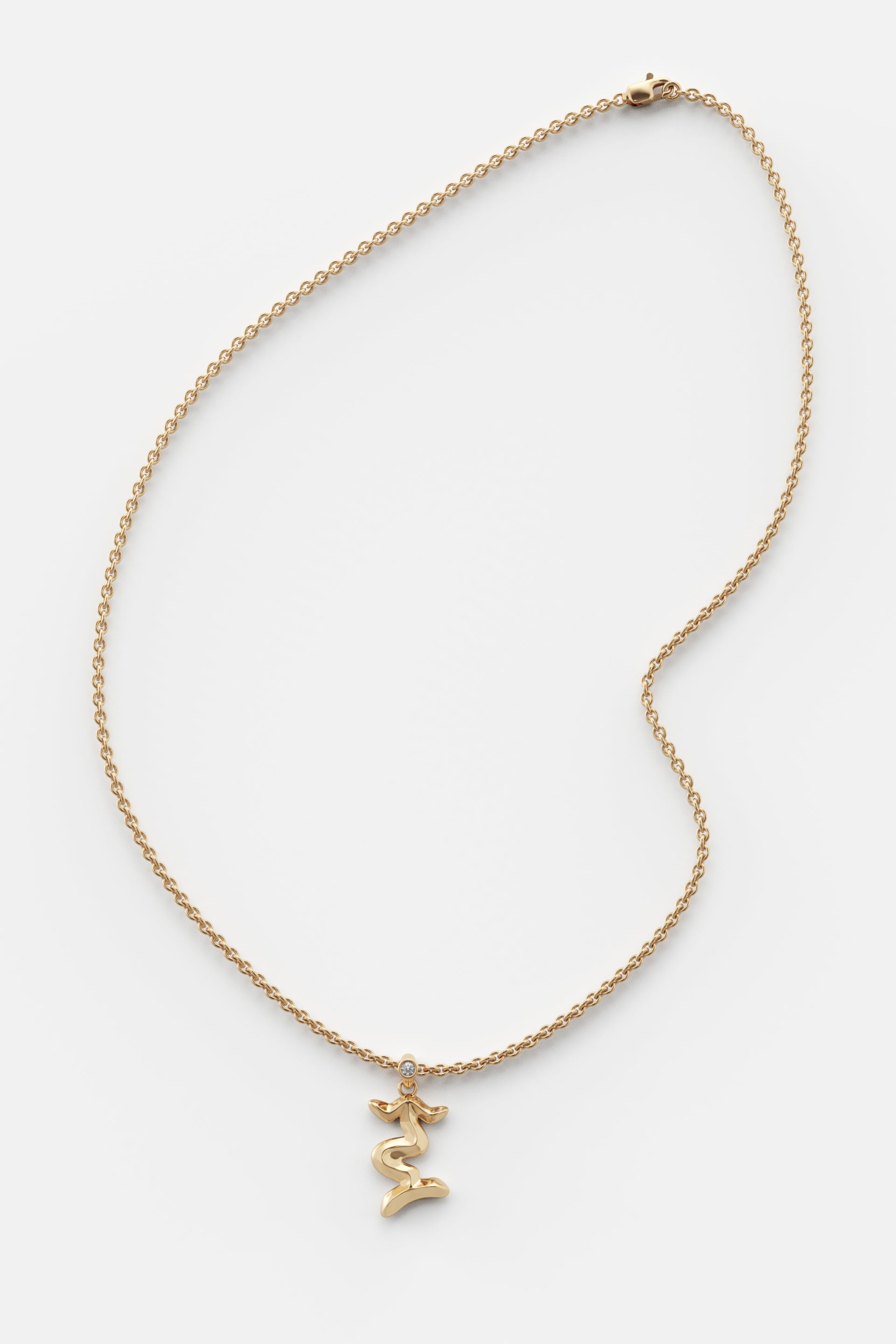 A jewelry essential, the letter pendant is reimagined through the vision of Lloyd Steven. Each letter is shaped with distinct curves and defined by a subtle ridge, creating detail and dimension.