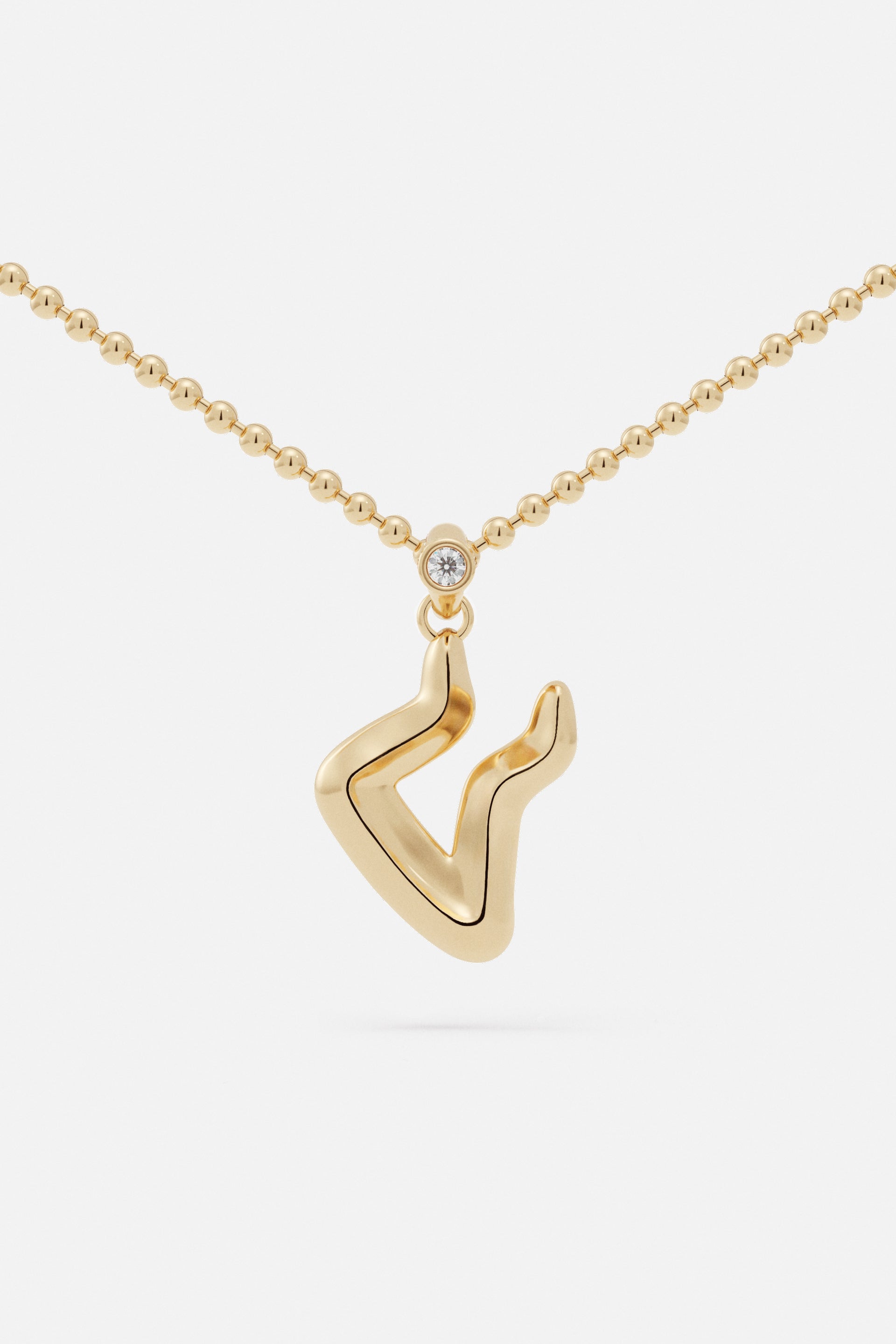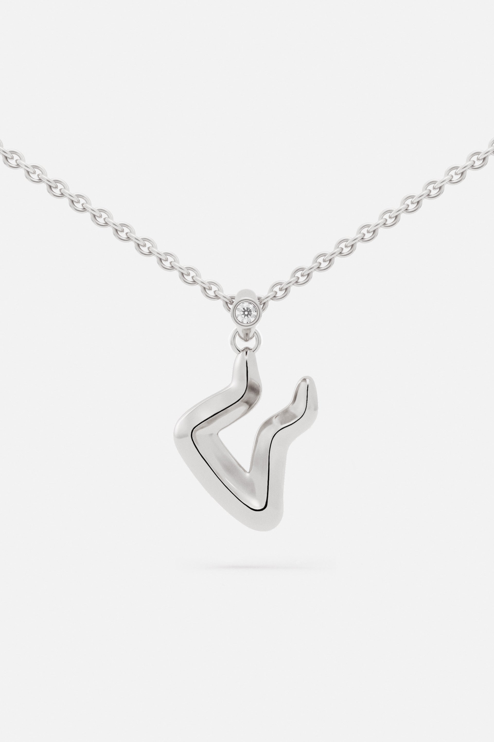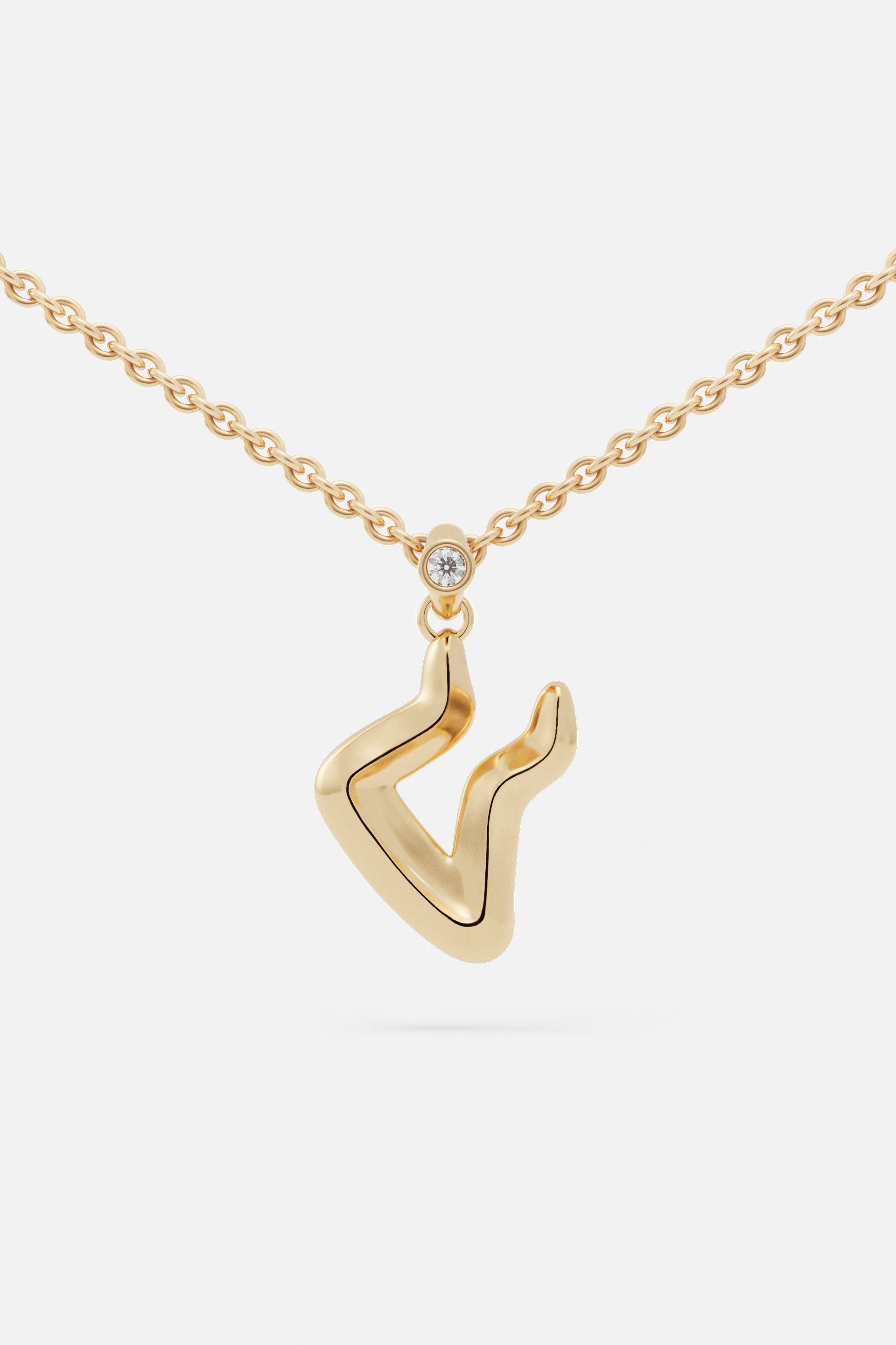 A jewelry essential, the letter pendant is reimagined through the vision of Lloyd Steven. Each letter is shaped with distinct curves and defined by a subtle ridge, creating detail and dimension.